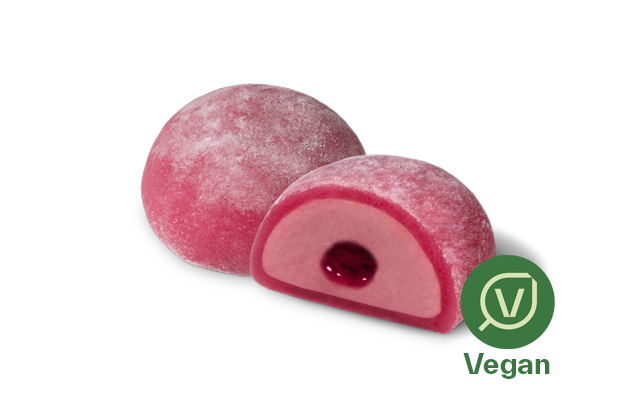 Veganes Reisdessert gefüllt mit einer Himbeercreme, aufgetaut