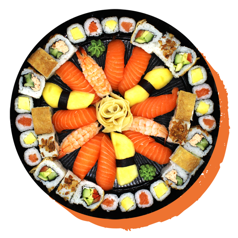 Eine Sushi-Platte, die in den Farben Kaliforniens erstrahlt – vom Grün der Palmen bis hin zum Orange des Sonnenuntergangs. Ein Traum nicht nur für dein Auge, sondern auch für deinen Gaumen.